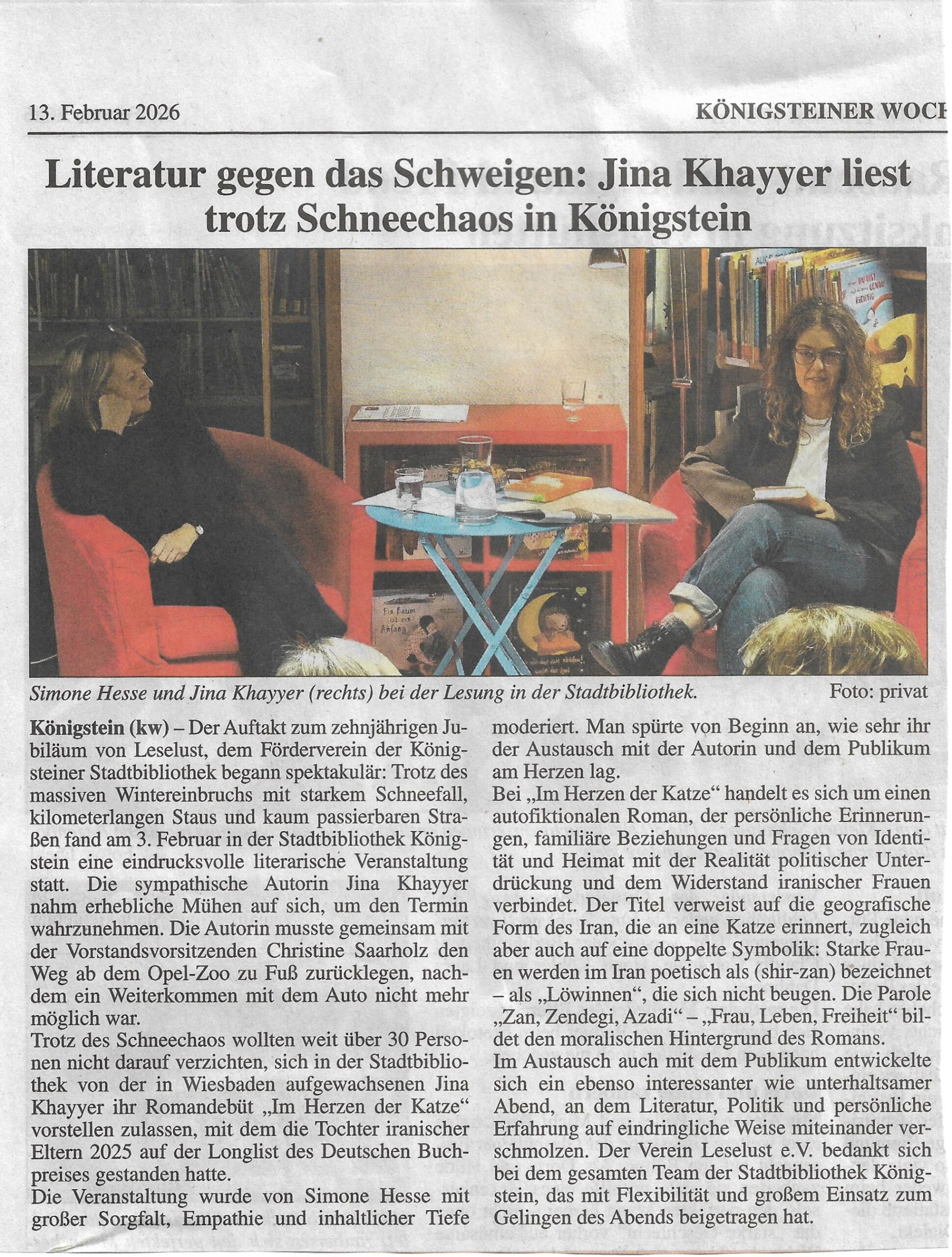 Jina Khayyer in der Stadtbibliothek, Königsteiner Woche 13.02.2026